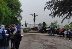 Dopo esserci ritrovati a Spiazzi, presso la croce astile situata vicino all’hotel Stella Alpina, abbiamo iniziato la discesa con una processione penitenziale itinerante fino a giungere al Santuario.